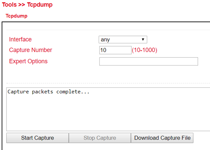 Under Administration > Config Management the current configuration can be saved, an existing configuration can be uploaded or the router can be reset to the default configuration.
