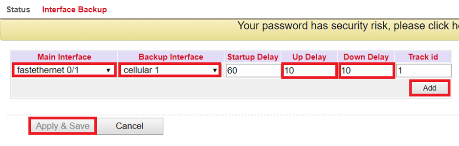 If Cellular 1 is selected as Outside Interface, the port mapping only works if the cellular interface is assigned a public IP address! |